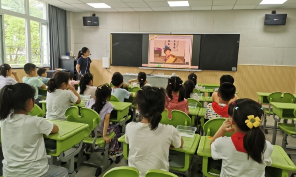 徐诗文老师执教《认识厘米》一课。徐老师精心准备,研读教材,巧妙设计,以自主、合作、探究的模式展开教学。将游戏融入课堂,使课堂氛围活跃生动了起来,为本学期数学学科公开课走好了"第一步"。徐老师以故事导入,通过提问古时候为什么衣服做小了,使学生意识到测量物品长度时需要统一的标准,产生学习需求。再通过找一找的活动,让学生直观地感受到了1厘米有多长,初步建立1厘米的表象。接着徐老师通过用1厘米小棒摆一摆、量一量的活动,带着学生亲历了尺子的生成过程,进而自制出厘米刻度尺。最后通过测一测、画一画,进一步加深学生对直尺的认识。